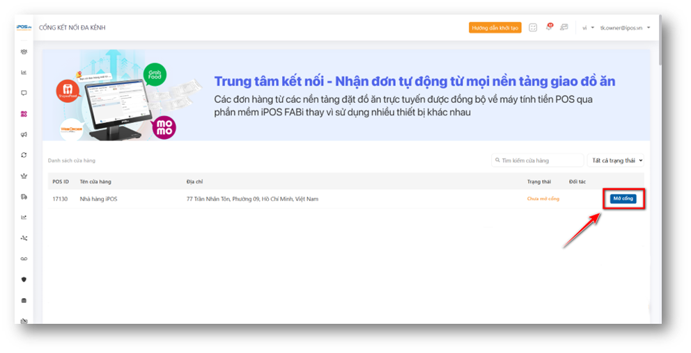 - Tìm đến cửa hàng bạn muốn kết nối -> ấn “Mở cổng”