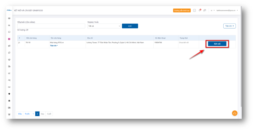 Chọn cửa hàng cần mở gian hàng -> ấn “Kết nối”