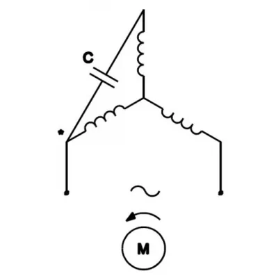 Trên thực tế, Động cơ 3pha có thể làm việc ở lưới 1pha như động cơ 1pha khi dùng tụ điện mở máy động cơ có thể đạt đến 80% công suất định mức. Tuy nhiên người ta thường áp dụng với động cơ 3pha công suất nhỏ dưới 2KW . Khi đó mỗi động cơ cần phải chọn cho 1 sơ đồ và trị số tụ điện cho phù hợp .