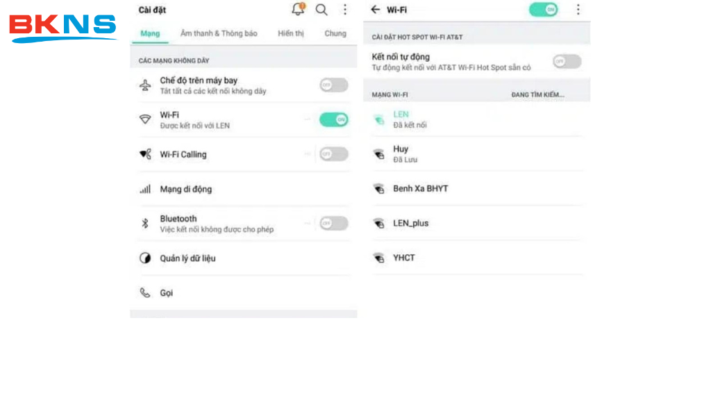 Bước 1: Vào cài đặt trên điện thoại và lựa chọn wifi sau đó màn hình điện thoại sẽ hiển thị danh sách những mạng wifi có thể kết nối
