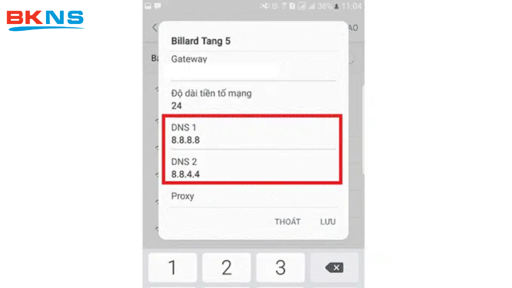 - DNS 1 điền: 8.8.8.8