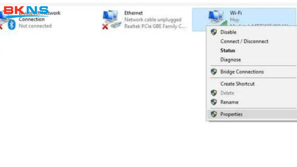 Bước 3: Giao diện khác hiện lên, bạn nhấn vào Change adapter settings. Lúc này trên máy tính sẽ hiện lên những mạng kết nối ở máy tính, bạn nhấn vào Ethernet đối với máy tính để bàn. Còn trong trường hợp bạn đang sử dụng kết nối wifi thì bạn nhấn chuột phải vào wifi bạn đang kết nội, có 1 tab hiện lên bạn nhấn Properties.