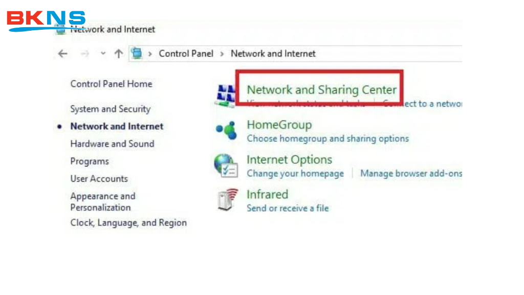 Bước 2: Ở mục bên trái, tại cửa sổ Control Panel bạn chọn Network and Internet, sau đó chọn Network and Sharing Center.