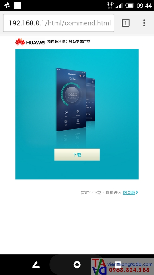 Từ trình duyệt điện thoại vào địa chỉ 192.168.8.1 hoặc từ CHPlay (với các máy Android) hoặc Appstore (với các máy IOS) để tải phần mềm Huawei HiLink