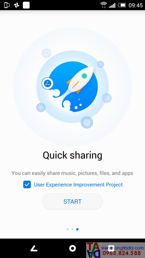 Gạt qua phần giới thiệu của ứng dụng, chọn START