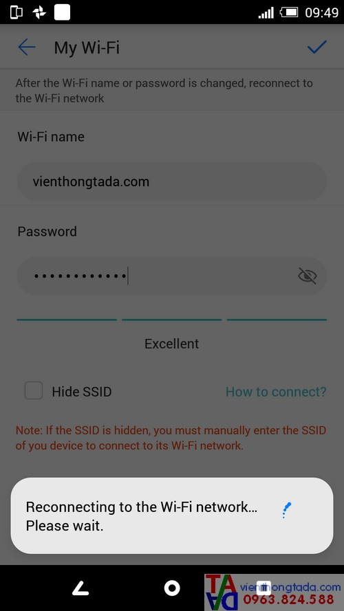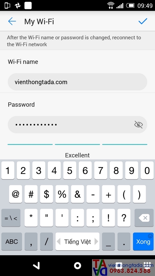Sau khi cài đặt được hoàn tất. Điện thoại của bạn sẽ tự nhập đăng nhập vào wifi mới