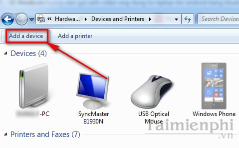 Bước 4:Tại đây bạn click Add a device để dò tìm thiết bị kết nối qua Bluetooth