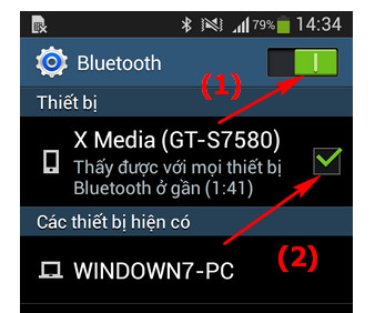Bước 2: Bật Bluetooth trên điện thoại (ở đây chúng tôi sử dụng điện thoại Android). Và tích vào mục "Thấy được thiết bị Bluetooth ở gần" (Hình bên dưới)