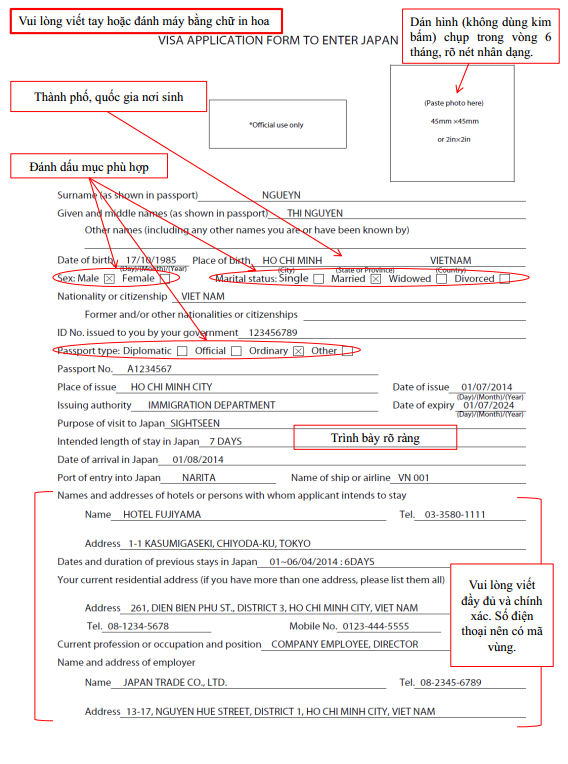 Cách điền đơn Xin Visa Nhật Chuẩn Xác - VietNam Booking