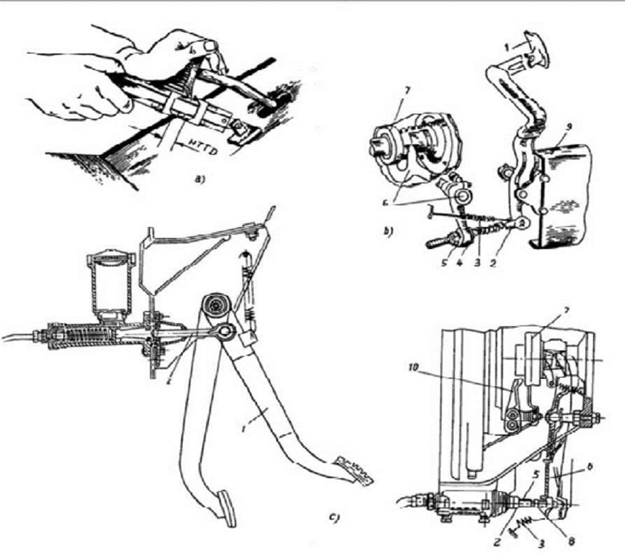 Hành trình tự do và hành trình cắt ly hợp (hình 1 và 2) của bàn đạp tương ứng với khe hở đầu các đòn mở và ổ bi tỳ, để đảm bảo đóng, mở ly hợp an toàn và dứt khoát.
