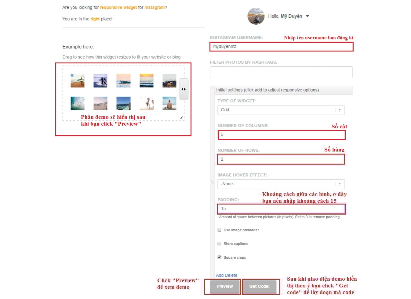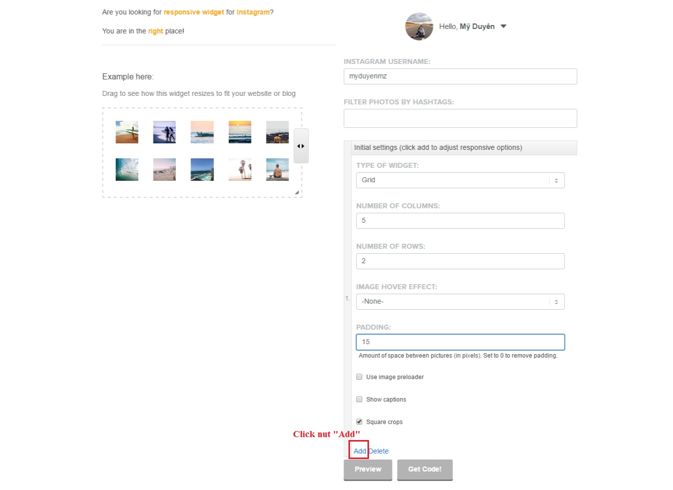 Lưu ý, bạn có thể tự responsive cho phần hình ảnh instagram của mình