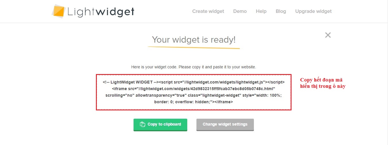 Sau cùng bạn Click "Get code" thì màn hình sẽ hiện đoạn mã code để bạn copy.