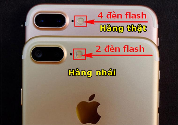 iPhone hàng thật sở hữu tới 4 bóng đèn falsh LED, còn iPhone hàng giả chỉ có 2 đèn flash LED.