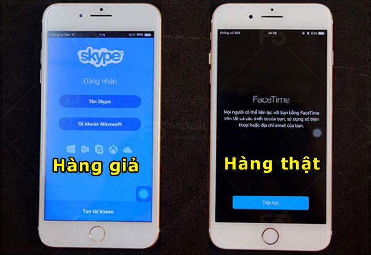 Cùng với những đặc điểm trên còn một đặc điểm khác để chúng ta có thể phân biệt iPhone thật giả đó chính là tính năng FaceTime được tích hợp sẵn trên các thiết bị iPhone, iPad, với thiết bị iPhone nhái sẽ không sử dụng được tính năng này, khi ấn chọn vào FaceTime ứng dụng Skype sẽ xuất hiện để thay thế. Nhấc máy mở khóa Một điểm đáng chú ý khác là trên bộ đôi iPhone 7 của Apple có thêm tính năng Raise to wake (nhấc máy mở khóa). Vì vậy, với iPhone 7 thật bạn chỉ cần bạn nhấc thiết bị lên là màn hình sẽ tự động sáng. Trong khi đó, những chiếc iPhone 7 “hàng mã” không có tính năng này. Độ mượt mà khi sử dụng Là một trong những smartphone sở hữu cấu hình mạnh nhất hiện nay nên khi trải nghiệm iPhone 7 Plus bạn sẽ thấy các thao tác vô cùng mượt mà. Dĩ nhiên là các sản phẩm giả không thể hoạt động trơn tru như thế và sẽ có hiện tượng giật, lag, thỉnh thoảng còn tự động thoát ứng dụng…