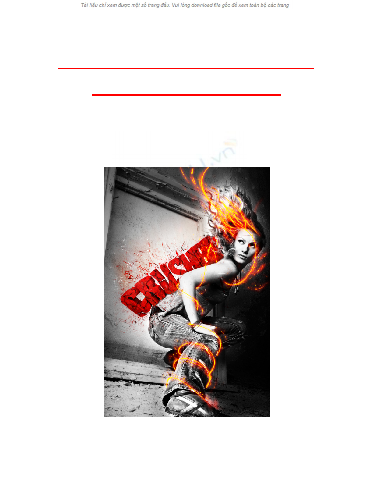 Mạng xã hội chia sẻ tài liệu Upload Đăng nhập Nâng cấp VIP Trang chủ » Công Nghệ Thông Tin » Khoa học dữ liệu8 trang 328 lượt xem 590Hướng Dẫn Photoshop: Hiệu Ứng Tia LửaHướng Dẫn Photoshop: Hiệu Ứng Tia Lửa Giới thiệu Trong hướng dẫn này, bạn sẽ tìm hiểu cách tạo ra các tia lửa sáng tạo và có phong cách trong 10 bước dễ dàng. Bước 01 Đối với hướng dẫn này, bạn sẽ cần một hình ảnh Line – up có sẵn thật đẹp. Một hình ảnh nào đó có hành động …và tốt nhất là màu tố (hiệu ứng này hoạt động tốt hơn với thiết lập màu tối).
