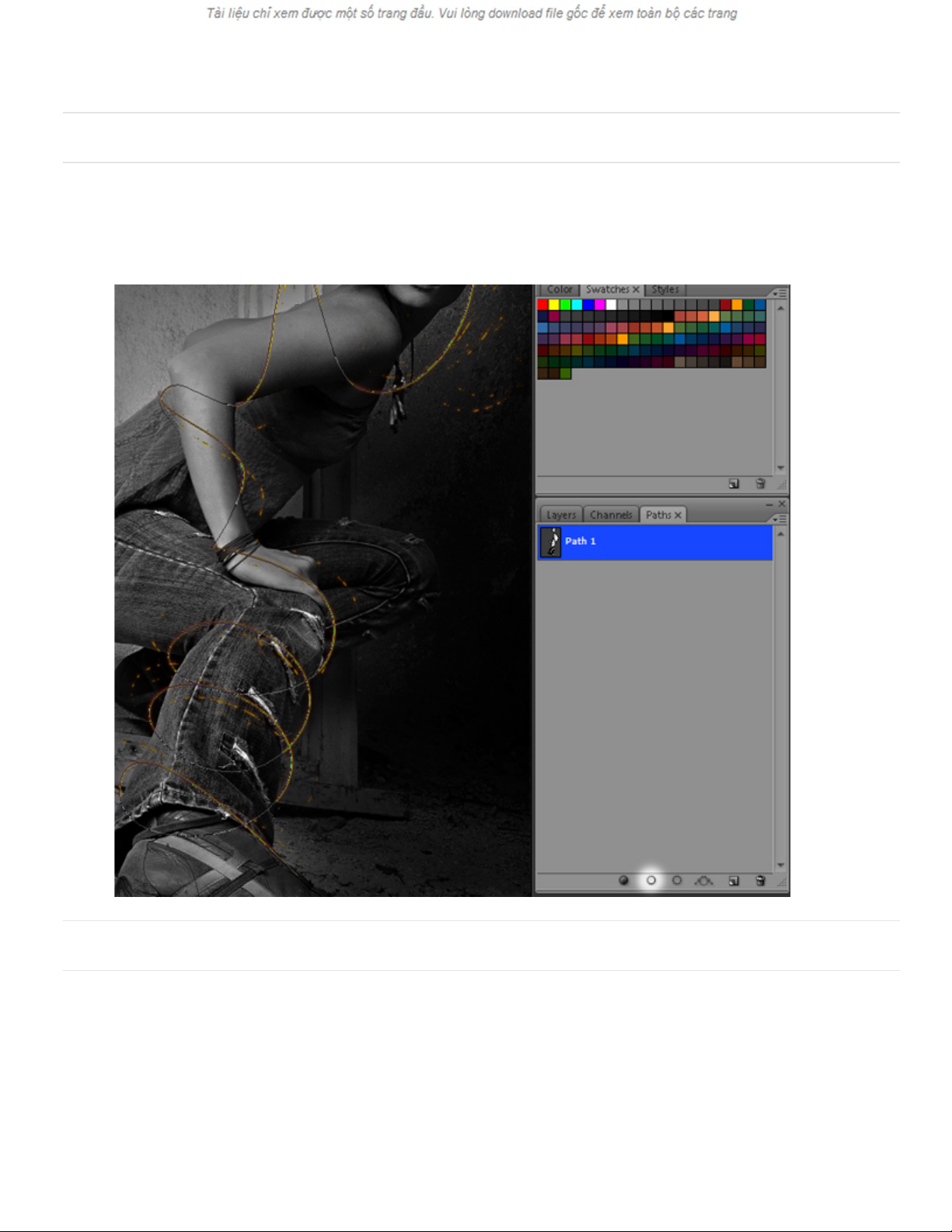 Bước 01Đối với hướng dẫn này, bạn sẽ cần một hình ảnh Line – up có sẵn thật đẹp. Một hình ảnh nào đó có hành động …và tốt nhất là màu tố (hiệu ứng này hoạt động tốt hơn với thiết lập màu tối). Bước 02Mở bức ảnh có sẵn, sau đó, vào Paths Tab và nhấp chuột tạo Path mới. Nhấn “P” trên bàn phím để chọn Pen Tool. Ý tưởng cơ bản là tìm vị trí tạo hiệu ứng lửa. Hãy nhớ tới kích thước và hành động. Các cơn lốc sẽ tạo nên điều kỳ diệu.