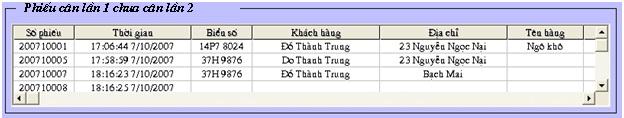 Đối với những xe quen, thì chỉ cần nhập biển số thì các thông tin đi kèm (như Khách hàng, địa chỉ, tên hàng, nguồn gốc) sẽ tự động hiển thị - thao tác sẽ trở nên rất nhanh chóng cho một phiếu cân.