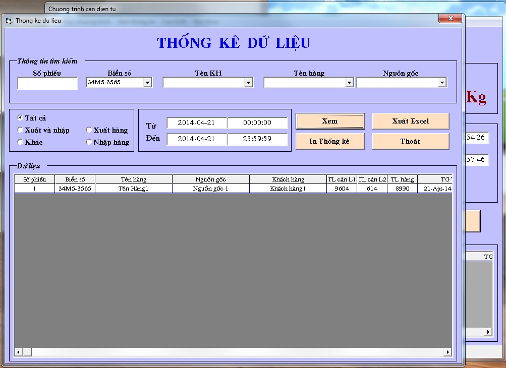 Hướng dẫn thống kê, báo cáo dữ liệu cân