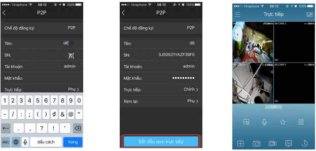 Bước 3: Nhập đầy đủ thông tin thiết bị -> Bắt đầu xem trực tiếp.