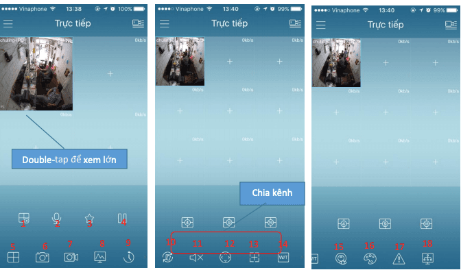 Bước 2: Trong giao diện xem trực tiếp sẽ có những biểu tượng như sau: