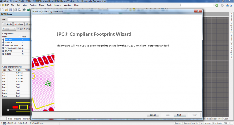 Tiếp theo vào Tool →IPC Compliant Footprint Wizard
