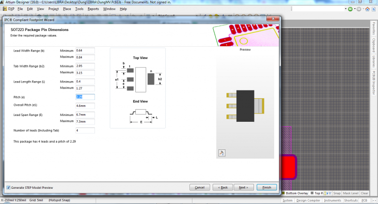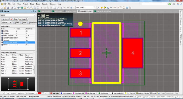 Ví dụ : Mình tạo thư viện cho AMS1117 có kiểu chân là SOT223