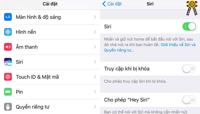 1. Cài đặt > Siri > Bật tính năng Siri nếu nó đang bị tắt. Việc kích hoạt Siri nhằm mục đích để nó hủy bỏ Voice Control.