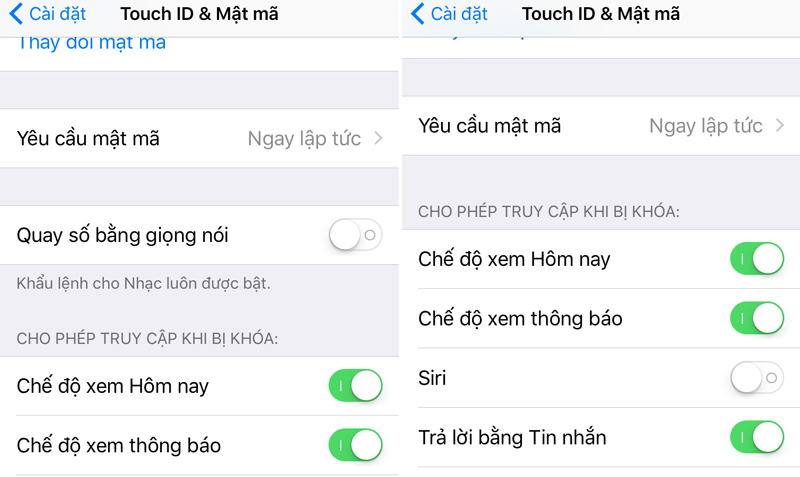 3. Sau đó, tắt tính năng Quay số bằng giọng nói. Cùng với đó, bạn cũng vô hiệu hóa Siri từ màn hình khóa.