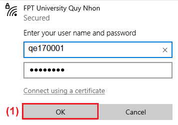 Login: Nhập account nội bộ mạng FPTU Quy Nhơn (là account mạng wifi FPT University Quy Nhon).