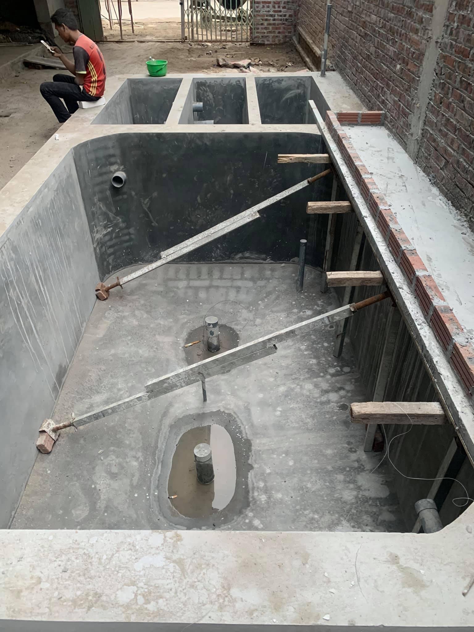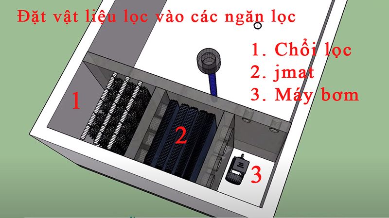 Chú ý là mặt đáy bể chính và ngăn lọc bằng nhau hoặc ngăn lọc có thể thấp hơn bể chính.