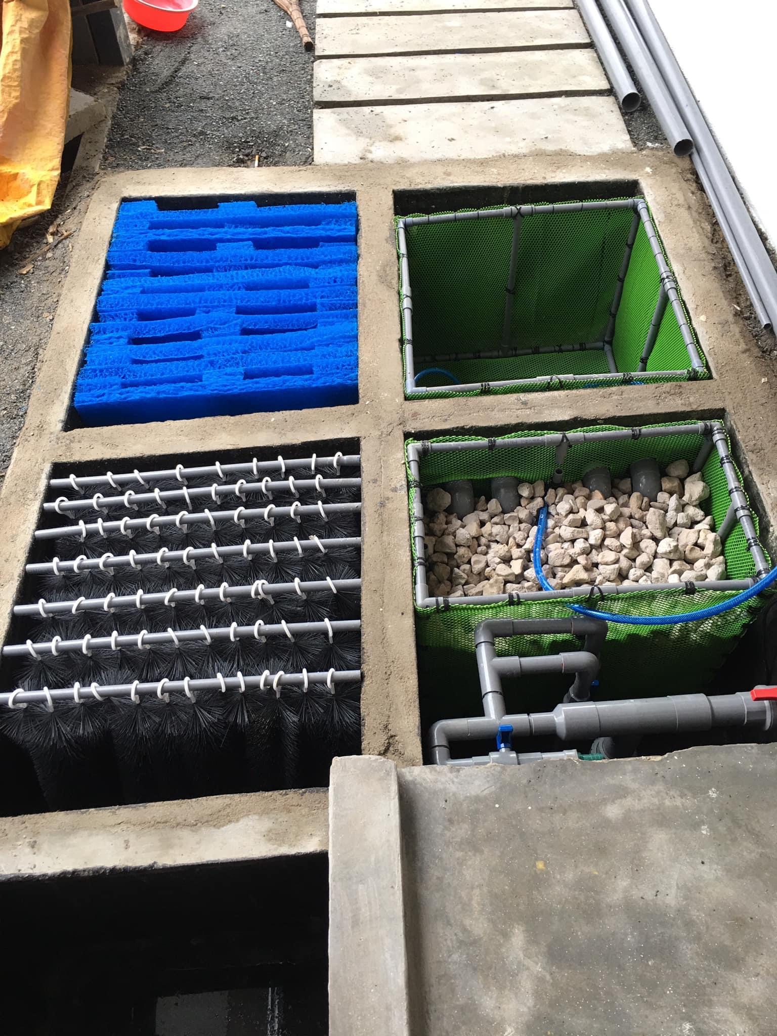 Một bước cực kì quan trọng quyết định chất lượng nước của hồ. Thông thường bộ lọc hồ cá Koi sẽ được xây dựng cạnh bên hồ để việc đi đường ống dễ dàng, nhưng trong một số điều kiện về diện tích hoặc thẩm mỹ mà bộ lọc hồ cá Koi sẽ được đặt ở xa hồ, việc đi đường ống sẽ khó khăn hơn nhưng vẫn làm được.