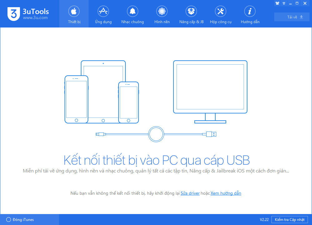 Hướng dẫn Bước 1: Cài đặt 3utools trên máy tính, bạn tải và cài đặt 3utools ở trang https://www.3u.com/