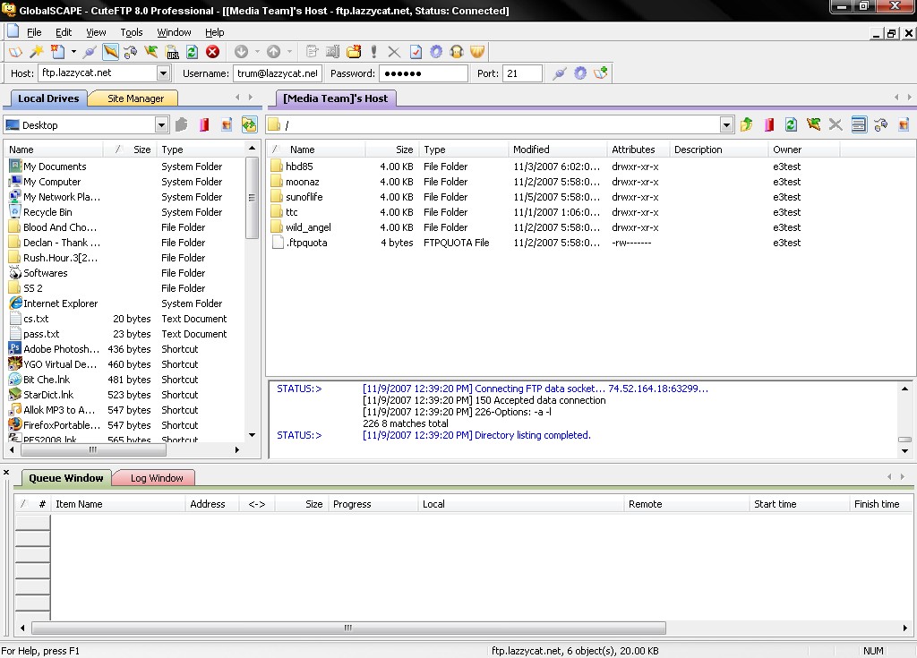 Sau khi điền đầy đủ thông tin, bấm vào nút connect. Đợi cho CuteFTP kết nối vào server, sau đó cửa sổ sẽ như thế này : (CuteFTP có thể quản lý một lúc nhiều hosting)