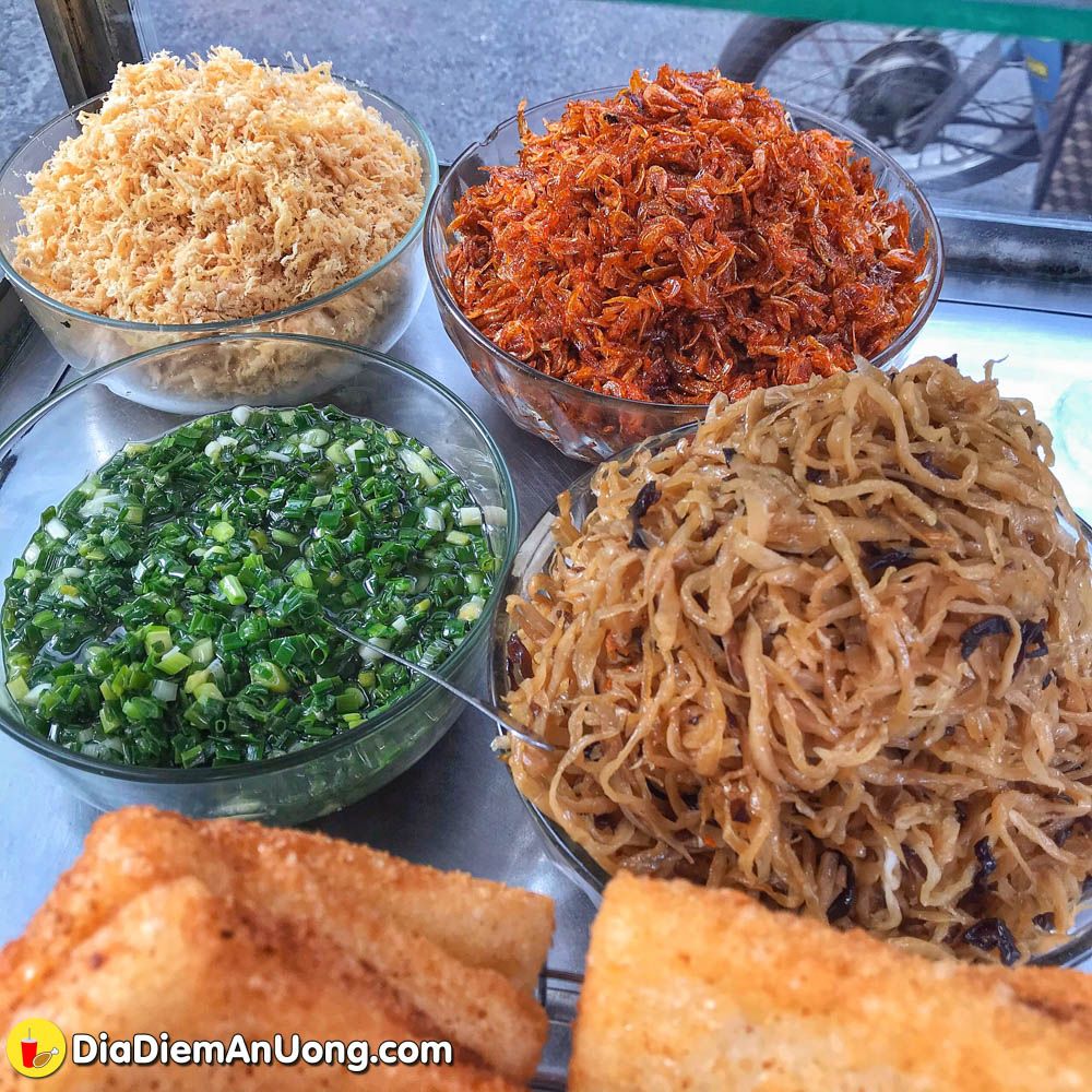 Topping gồm có ruốc, chà bông, mỡ hành, cải xá bấu ăn kèm với xôi vui miệng mà ngon nữa chứ. Topping đầy đủ thì sẽ có thêm một lớp tương ớt kèm theo ăn cay cay “phê” lắm.
