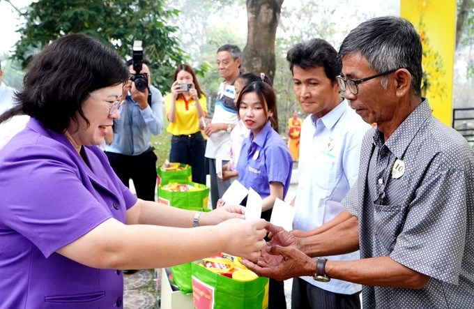 Hơn 7 triệu suất quà Tết đến với gia đình chính sách, gia đình có công với cách mạng, hộ dân khó khănHơn 7 triệu suất quà Tết đến với gia đình chính sách, gia đình có công với cách mạng, hộ dân khó khăn(Thanhuytphcm.vn) - Chiều 7/2, đoàn công tác của Ủy ban Trung ương MTTQ Việt Nam do đồng chí Tô Thị Bích Châu, Phó Chủ tịch Ủy ban Trung ương MTTQ Việt Nam làm trưởng đoàn, đã đến đến thăm, tặng quà đến gia đình chính sách, gia đình có công với cách mạng, hộ cận nghèo trên địa bàn các xã Phạm Văn Hai, Lê Minh Xuân, Tân Nhựt, Bình Lợi, Vĩnh Lộc A và Vĩnh Lộc B, nhân dịp Xuân Ất Tỵ năm 2025.
