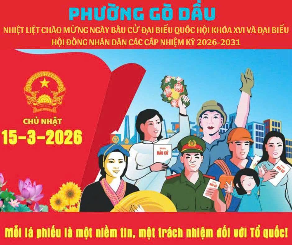 Phường Gò Dầu nhiệt liệt chào mừng ngày bầu cử Đại biểu Quốc hội khóa XVI và Đại biểu HĐND các cấp nhiệm kỳ 2026 - 2031 |