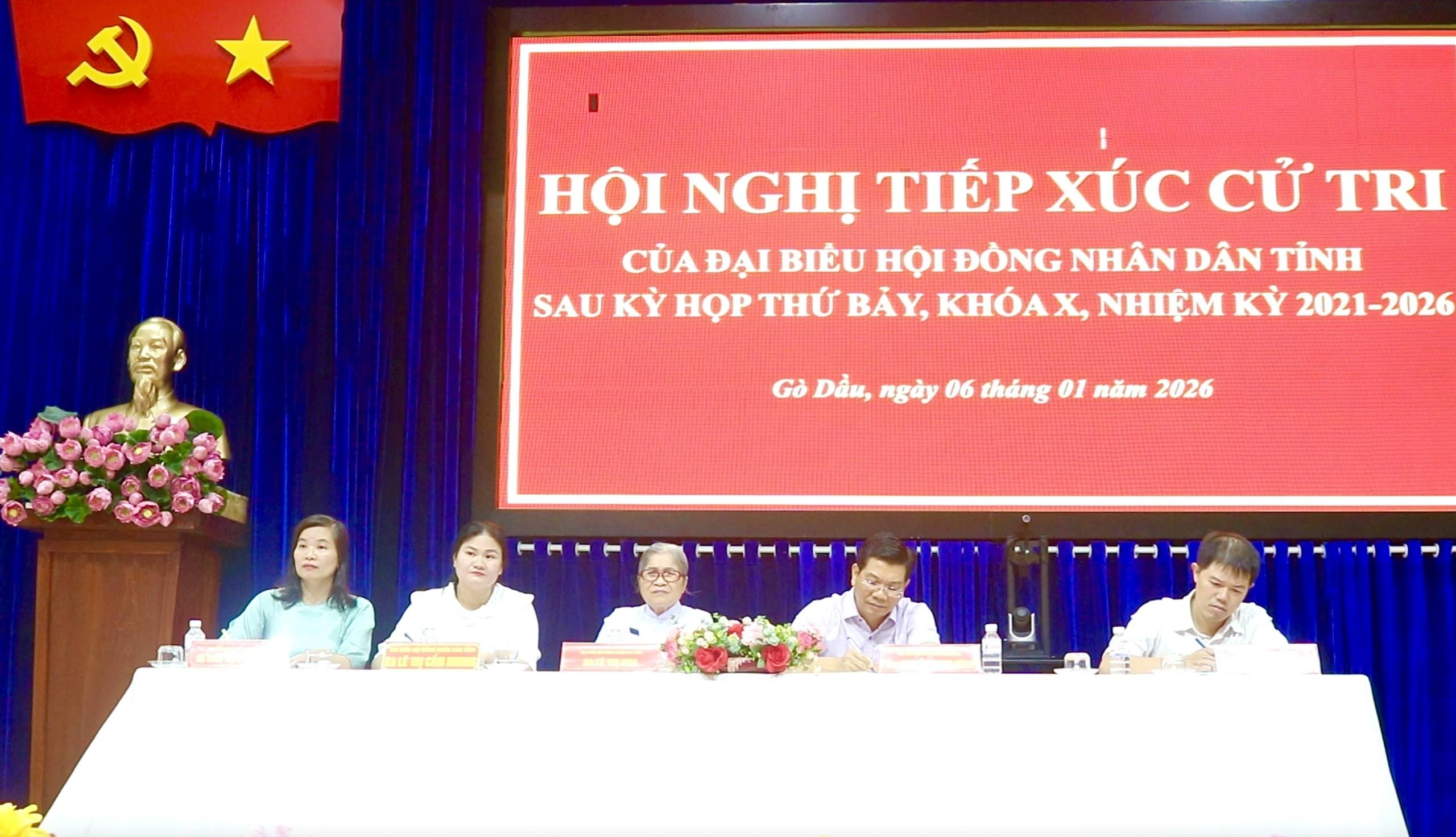 Tổ đại biểu số 5 HĐND tỉnh tiếp xúc cử tri phường Gò Dầu Sáng 06/01, Tổ đại biểu số 5 HĐND tỉnh gồm Phó Bí thư Thường trực Tỉnh uỷ, Chủ tịch HĐND... - 09:21 Tổ Đại biểu số 01 HĐND phường Gò Dầu tiếp xúc cử tri khu phố Rạch Sơn, khu phố Thanh Hà