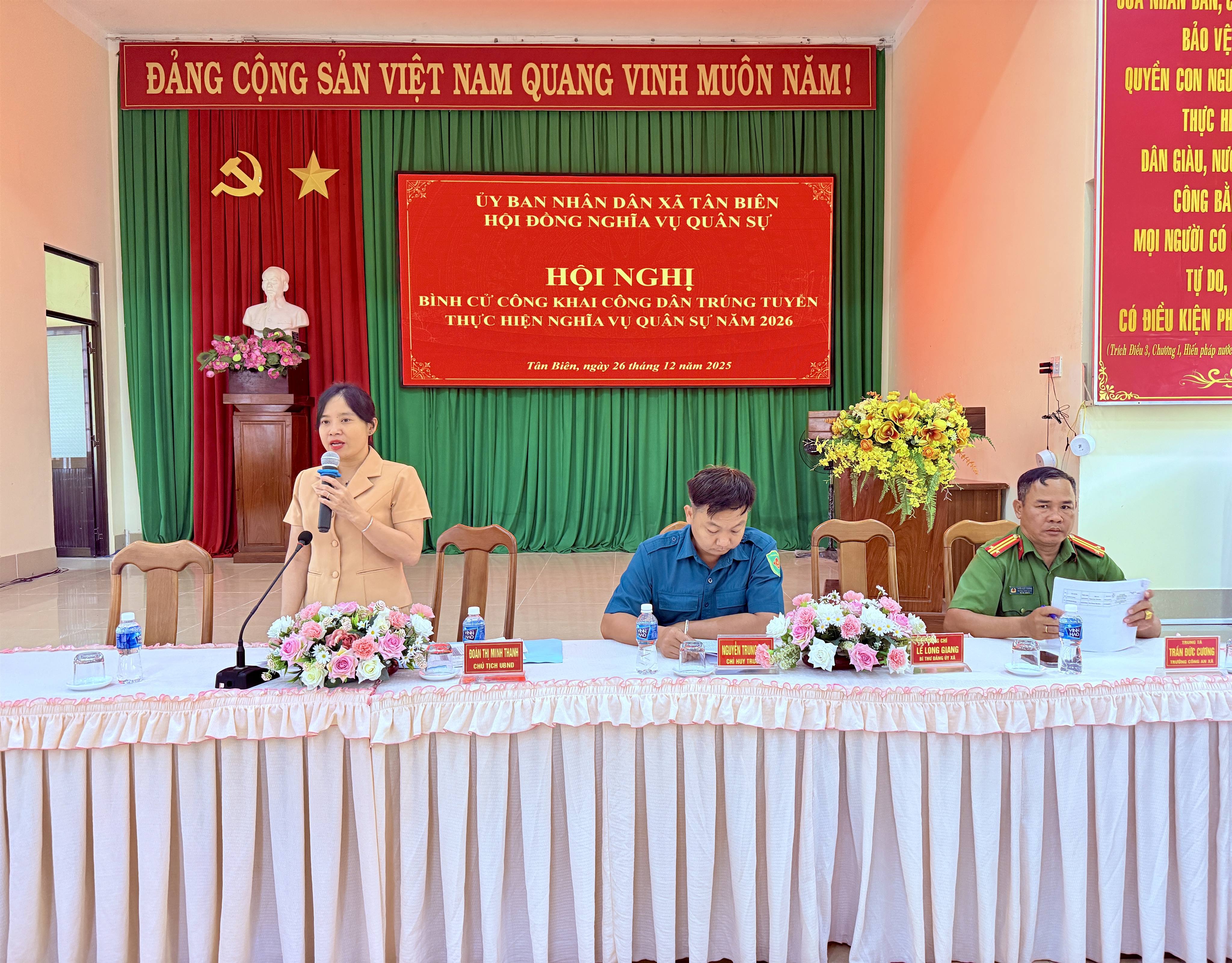 Tân Biên bình cử công khai 60 công dân trúng tuyển thực hiện nghĩa vụ quân sự năm 2026 -