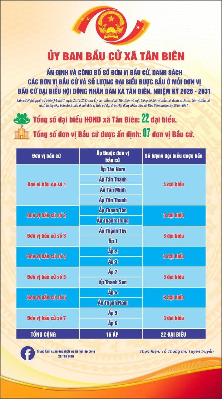 - 08:18 HĐND xã Tân Biên khai mạc kỳ họp thứ 3 (kỳ họp cuối năm 2025)