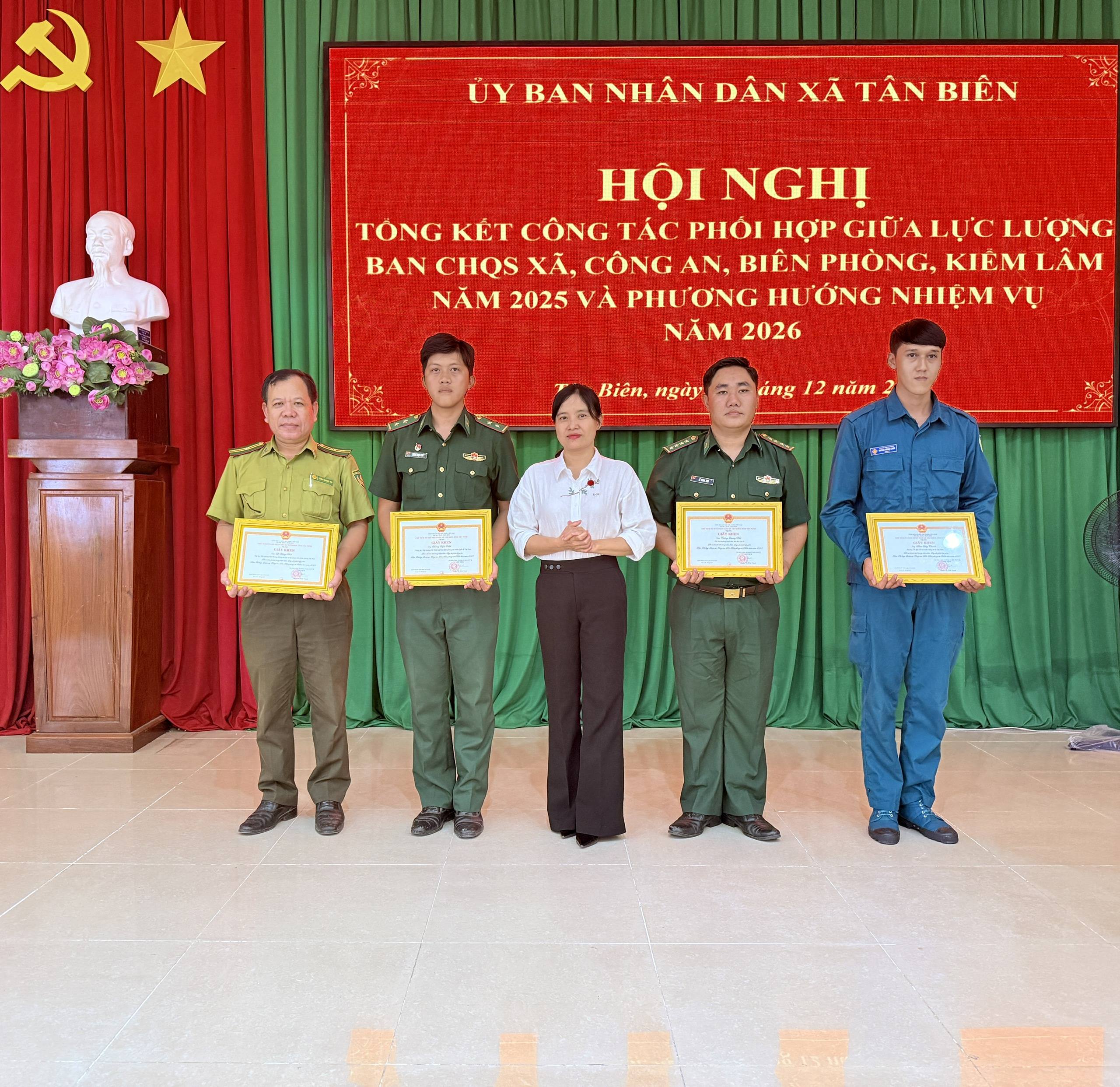 Tân Biên tổng kết công tác phối hợp giữa Ban CHQS xã – Công an – Biên phòng – Kiểm lâm năm 2025 -