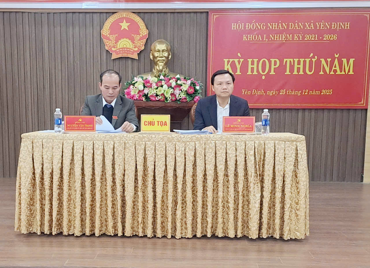 Hội đồng nhân dân xã Yên Định khóa I, nhiệm kỳ 2021 – 2026. Tổ chức Kỳ họp thứ 5- Kỳ họp thường lệ... Sáng 25/12/2025, Hội đồng nhân dân xã Yên Định khóa I, nhiệm kỳ 2021 – 2026. Tổ chức Kỳ họp thứ 5, Kỳ họp thường lệ cuối năm 2025. -