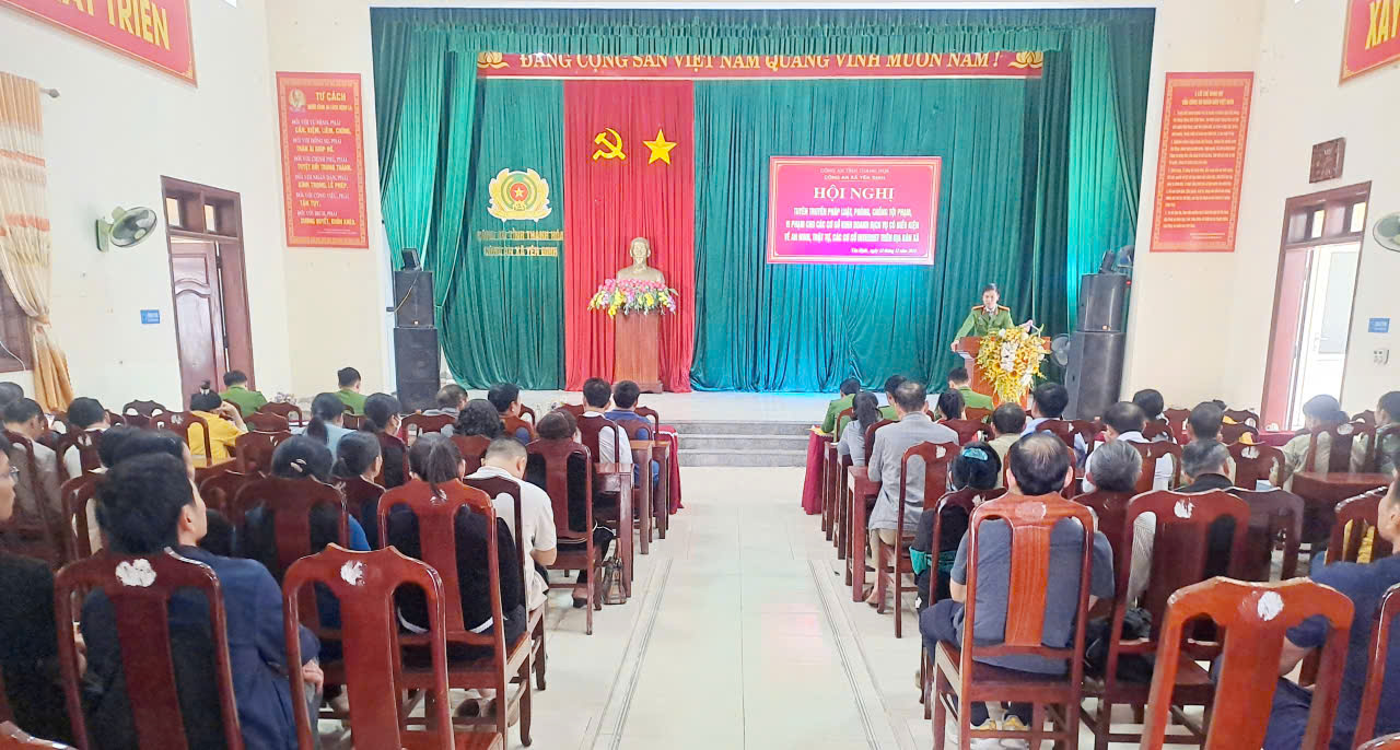 Công an xã Yên Định tổ chức tuyên truyền pháp luật cho các cơ sở kinh doanh có điều kiện về an... Nhằm nâng cao nhận thức pháp luật, góp phần bảo đảm an ninh trật tự trên địa bàn xã sau sáp nhập, Mới đây, Công an xã Yên Định đã tổ chức hội nghị tuyên truyền, phổ biến kiến thức pháp luật về lĩnh vực an ninh trật tự cho các cơ sở kinh doanh ngành nghề có điều kiện về an ninh, trật tự trên địa bàn... - Công an xã Yên Định tổ chức Lễ ra quân thực hiện cao điểm tấn công, trấn áp tội phạm.