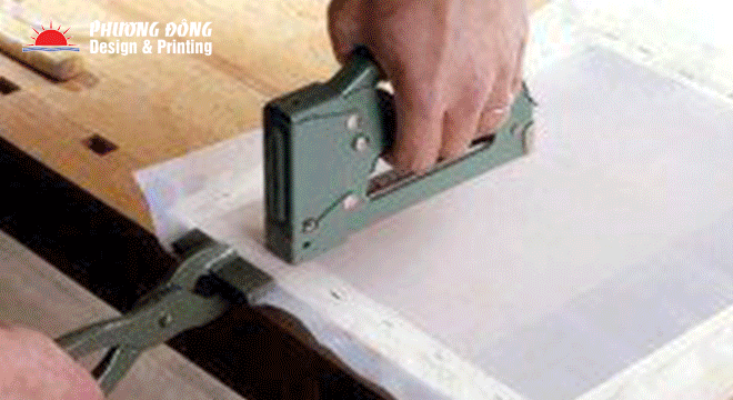 Chuẩn bị bản in: chuẩn bị khung gỗ hoặc nhôm đã đóng lưới, rửa và phơi khô sạch sẽ.