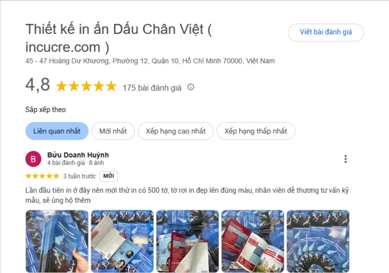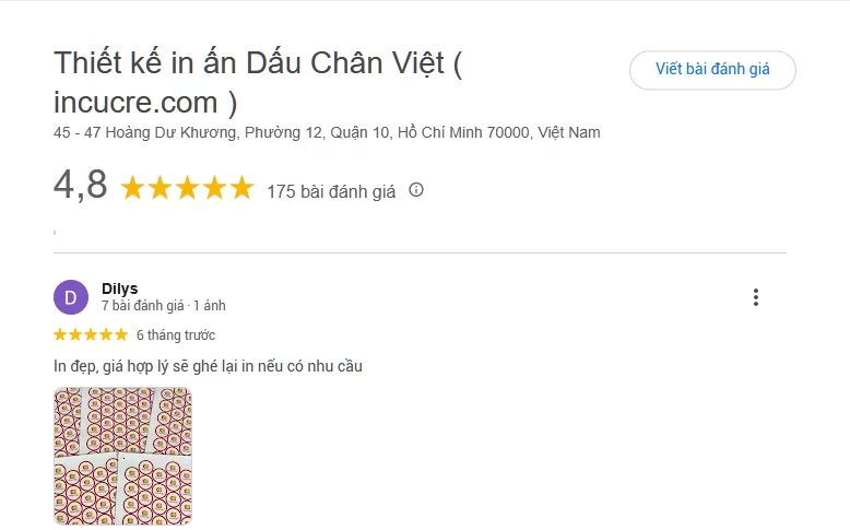 Và còn rất nhiều đánh giá khác tại bản đồ doanh nghiệp. In Cực Rẻ luôn lắng nghe mọi góp ý từ khách hàng dù là lời khen hay những lời khuyên thẳng thắn, chúng tôi đều coi đó là cơ hội quý giá để khắc phục và phát triển. Chính nhờ sự đóng góp tích cực này, In Cực Rẻ cam kết sẽ nỗ lực hơn nữa để mang đến những dịch vụ in ấn chất lượng, đáp ứng tốt nhất mọi nhu cầu của khách hàng trong tương lai