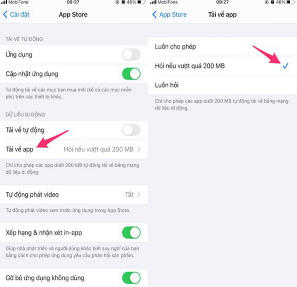 Hướng dẫn cho phép iPhone tải hoặc cập nhật ứng dụng bằng 4G