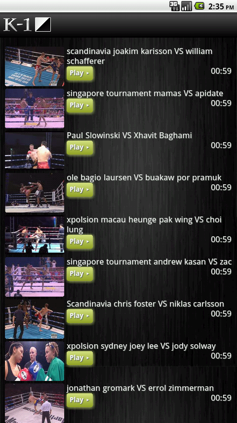 - Scroll through the list of 1-minute videos to watch intense fighting action