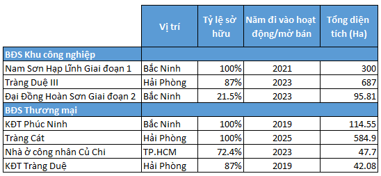 KBC hiện đang sở hữu hơn 4,713 ha đất KCN và 917 ha đất khu đô thị (KĐT). Trong đó, 4 KCN bao gồm KCN Quế Võ, KCN Quế Võ mở rộng, KCN Tràng Duệ 1 và KCN Tràng Duệ 2 với tổng diện tích 1,013 ha đã được lấp đầy 100%. Chúng đang mang về nguồn thu ổn định từ doanh thu dịch vụ, quản lý hạ tầng, doanh thu cấp nước và xử lý nước thải.