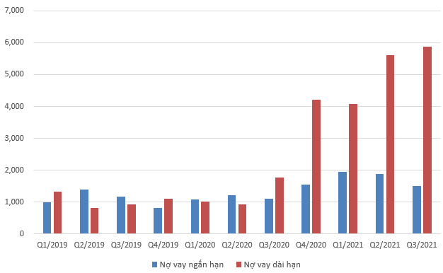 Nợ vay tài chính ngắn hạn và dài hạn của KBC. Đvt: Tỷ đồng