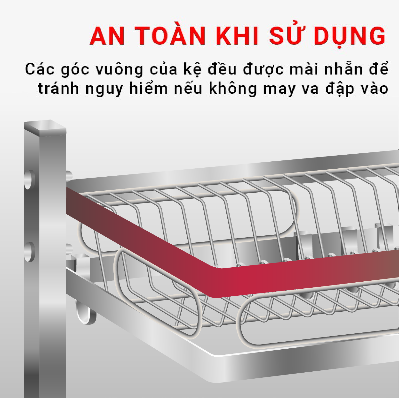 Kệ chén bát đa năng chịu được sức nặng lên đến 50 kg - Rổ để bát với sức chứa lên đến 40 cái.- Rổ để đĩa có thể đựng cùng lúc gần 38 đĩa to nhỏ các loại.- Tầng 2 có thể đựng trái cây (hoặc các loại tô, bát lớn, xoong chả)