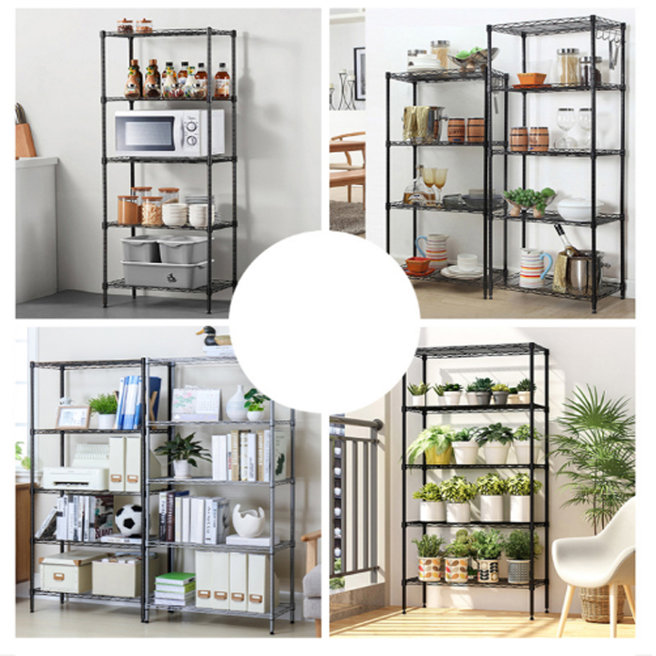 - Kệ sắt để đồ đa năng 5 tầng được làm từ chất liệu thép không gỉ cao cấp nên cực kỳ chắc chắn, sử dụng để đựng đồ ở phòng khách, phòng ngủ hoặc có thể làm giá sá